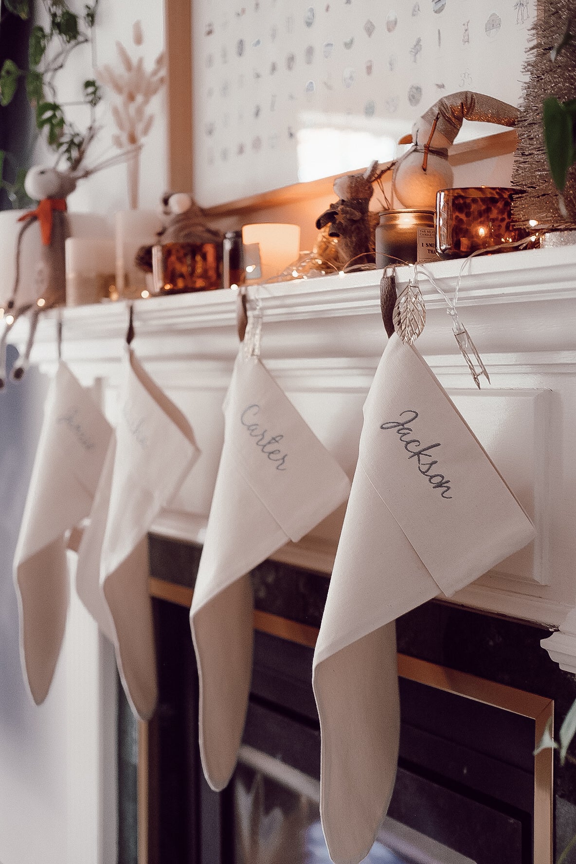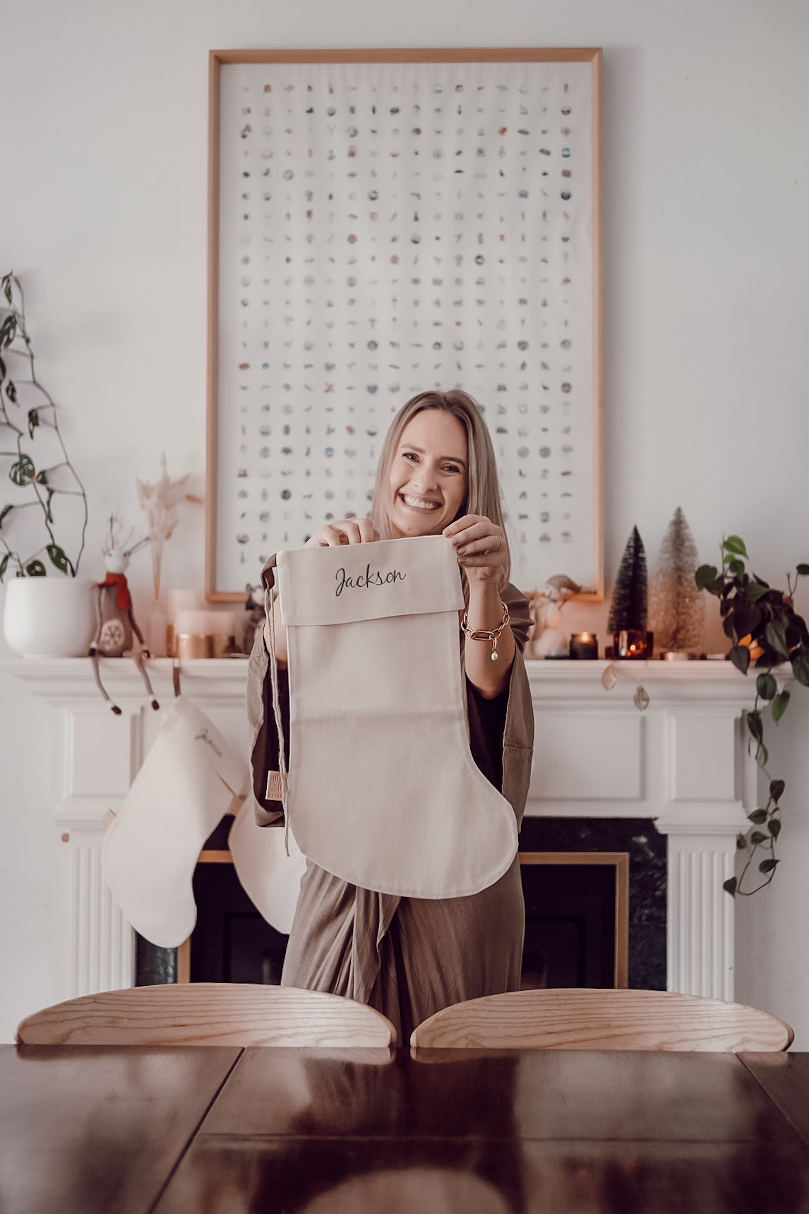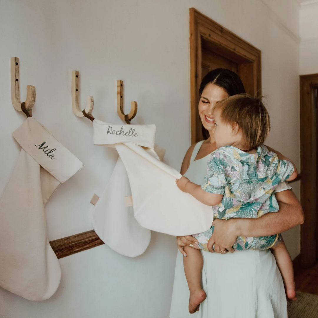 Handmade and custom-embroidered Christmas Stockings that are chic, sophisticated and understated for the minimalist in all of us! They are big enough to fit a reading book. Please note, these are a natural nude and not a pure white.