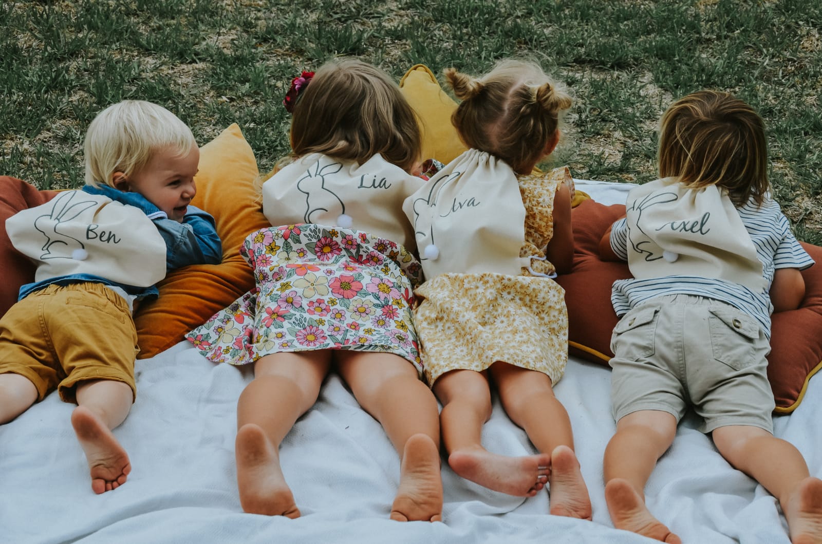 We all have a kid inside of us, and it's only when you have your own kids that you get to re-live the MAGIC of special celebrations such as Easter. Our Easter Bags are created for super fun Easter-egg Hunting activities where-ever you find yourself over this celebratory period. The backpack is durable (linen / cotton blend) and personalised with your kiddos' name(s). These backpacks can be used for any other activity as well making this sustainable, beautiful and BELIEVE ME - your kids will love them!
